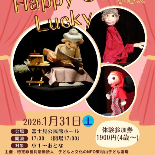 - 【1月31日(土)】小学生以上対象 ソロ人形劇『Happy Go Lucky』小心ズソロ人形劇【Happy Go Lucky】いくつかのいくつかの小品によるオムニバス作品集。さまざまな年代のひと… 続きを読む: 【1月31日(土)】小学生以上対象 ソロ人形劇『Happy Go Lucky』小心ズ