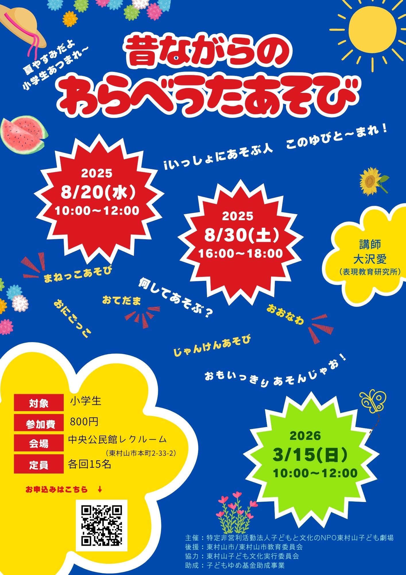 夏休み、わらべうたあそびをいっしょにあそぶ人、このゆびと~まれ!