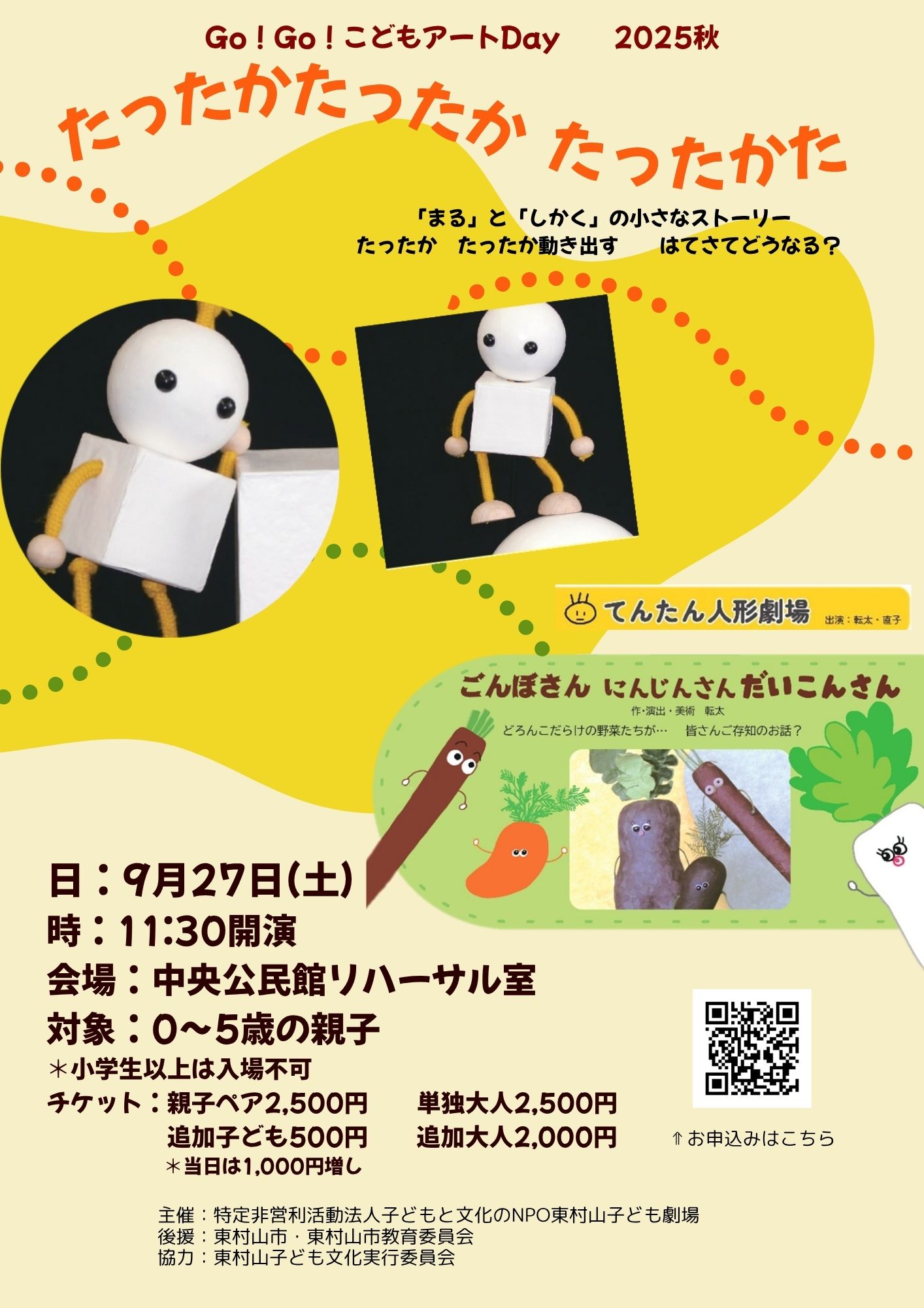 「たったかたったかたったかた」は、丸の顔と四角の身体、手足がついた人形で、「たったか」しかしゃべりません。「たったか」の声色の表現と人形の動きで、人形に魂が入り、見ている子どものイメージが膨らみます。