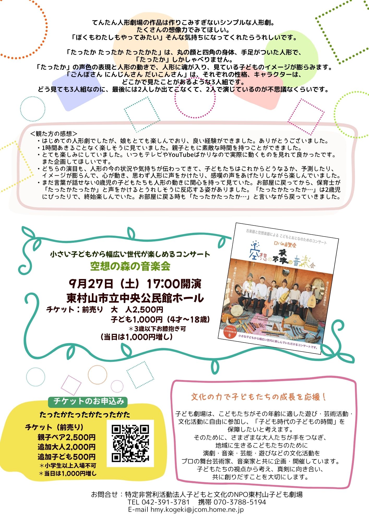 【料金】前売り:親子ペア2,500円 追加大人2,000円 追加子ども500円 単独大人2,500円