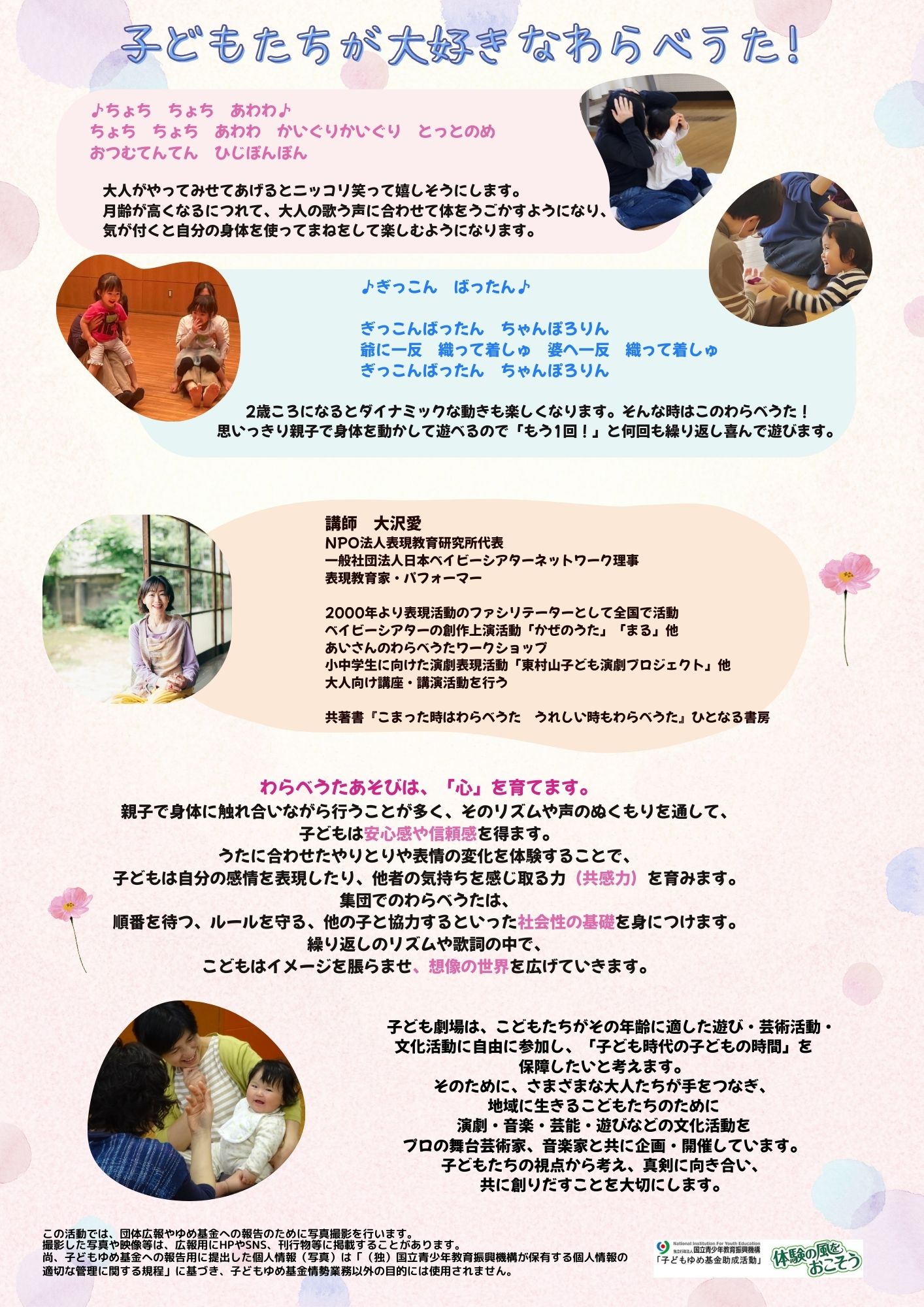 【講師】大沢 愛(NPO法人表現教育研究所代表・一般社団法人日本ベイビーシアターネットワーク理事)